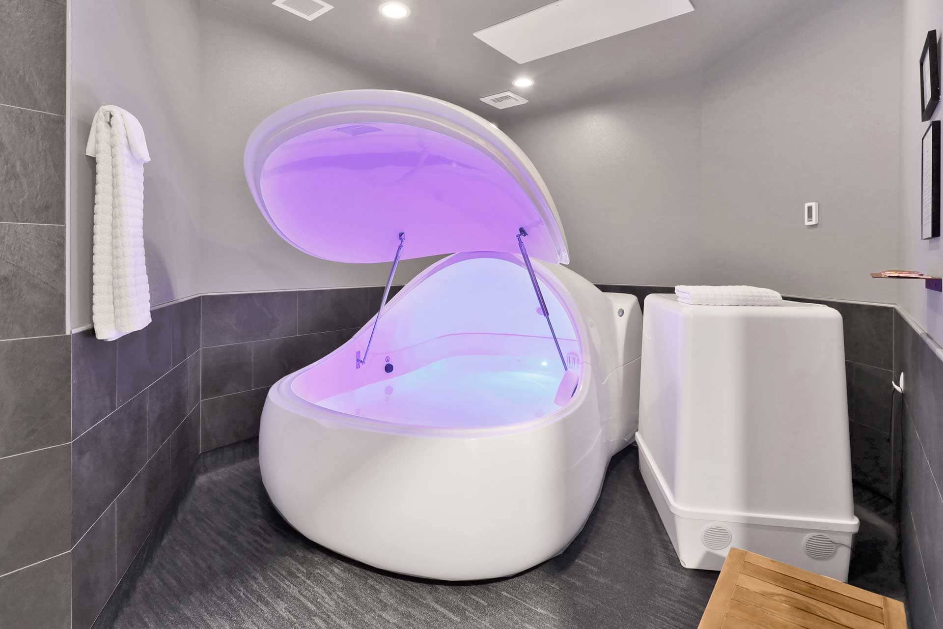 There’s no wrong way to float. Keep the lights off. Or turn them on. Listen to music or float in silence. Leave immediately or hang out afterward in the Lounge. Hold your stillness any way you like.